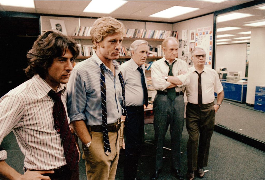 『大統領の陰謀』”ALL THE PRESIDENT’S MEN” Medium shot of Martin Balsam as Howard Simons, Jack Warden as Harry M. Rosenfeld, Jason Robards as Ben Bradlee, Robert Redford as Bob Woodward, and Dustin Hoffman as CarlBernstein. COPYRIGHT ©1976 WARNER BROS.ENTERTAINMENT INC. ALL RIGHT RESERVED. COURTESY WARNER HOME VIDEO PHOTOGRAPHS TO BE USED SOLELY FOR ADVERTISING, PROMOTION, PUBLICITY OR REVIEWS OF THIS SPECIFIC MOTION PICTURE AND TO REMAIN THE PROPERTY OF THE STUDIO. NOT FOR SALE OR REDISTRIBUTION.