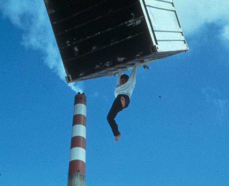 主題歌「一分鐘英雄」をバックに、<三菱>の自動車工場らしき場所でジャッキー研修生が準備体操をするシーンから始まる本作。フルコーラス使って日本と深く関わる作品であることが強調されるものの、舞台はすぐにジャッキーの本拠地・香港へ。カーショップを家族経営しているジャッキーは、車の知識と腕っぷしの強さを買われて父タンとともに違法改造車の取締に協力しているようだ。