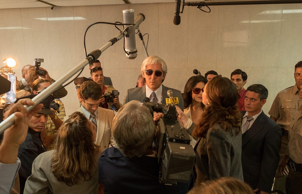実はホフマンには、生活費や経費を含めアメリカ政府から数千万~1億円以上の予算(金額には諸説あり)が提供されていたそうで、本作で彼が高級住宅地に住むデロリアンの“お隣さん”として裕福な生活を送っているのも、そういった背景をベースにしているのだろう。とはいえ、政府に充分な情報提供ができなかった場合いつでも再逮捕されるような危うい立場だったそうで、本作でもコリー・ストール演じるFBI捜査官にガミガミと説教される様子がたっぷり描かれている。