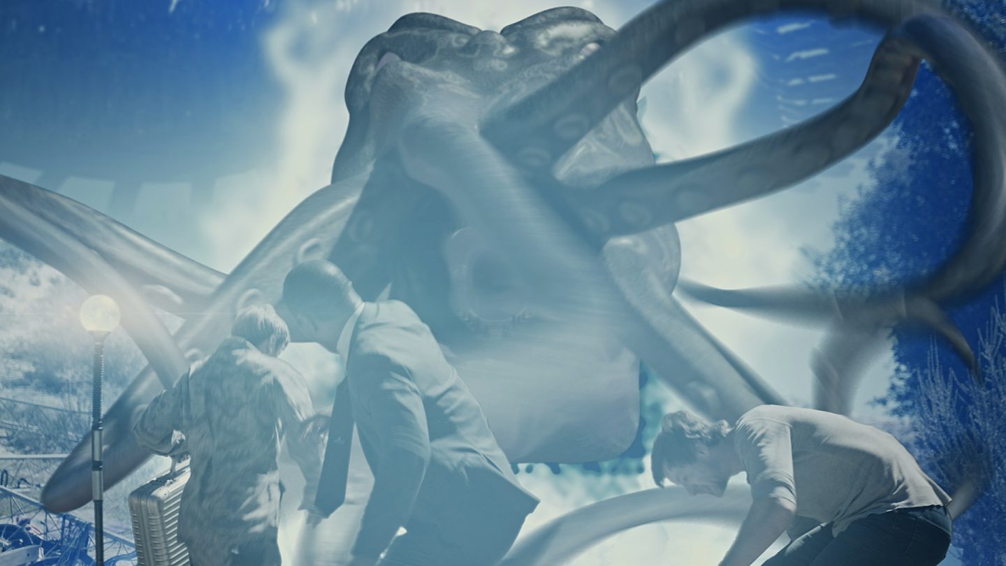 ただし、ラストにはこれまた突然“デカいイカのバケモノ”が出てきたり、終盤には味方側の宇宙人が、隠れ家で“別のアサイラム映画を観ているシーン”が挿入されたりするなど、「まあ多少はクスリと笑えなくもない」点はいくつか見受けられる。これで作品全体のフォローとするにはさすがに弱いが、“それはそれとして確かに存在するおもしろポイント”の一例として紹介しておこう。