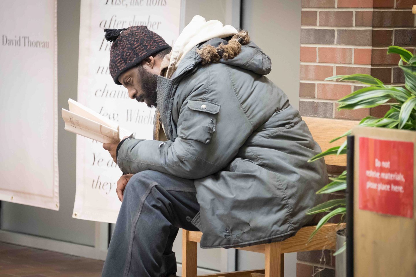 物語の舞台は、寒波が到来した米オハイオ州シンシナティ。緊急シェルターがいっぱいで行き場のなくなったホームレスたちは毎朝、開館と同時に公共図書館へ入館し、閉館まで館内で暖をとる。読書をする者もいれば、インターネットで情報を得る者、歯磨きや洗髪をする者など、多種多様な人たちが集っていた。