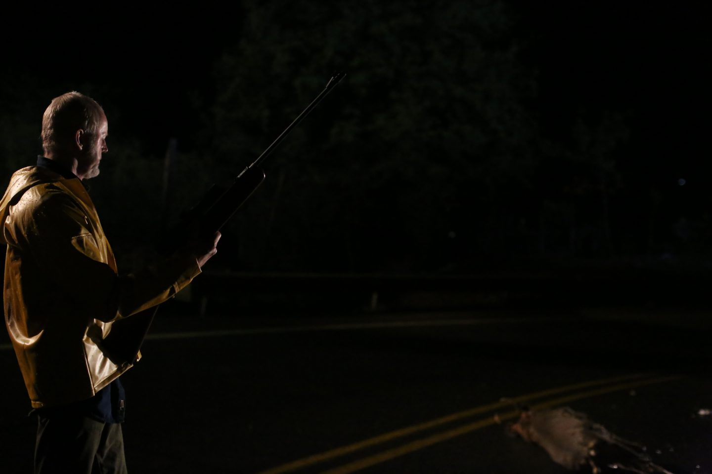 なんとびっくりテッドはハイウェイに餌を撒き、動物を道路におびき寄せ轢死させていたのだ。これが明かされるのは映画の冒頭。のっけから「テッド……おそろしい子ッ!」となり、彼の寡黙かつ不審極まりない挙動に目が釘付けになる。テッドがペットの可愛いウサギや鶏を抱くだけでも不安でドキドキしてしまう。