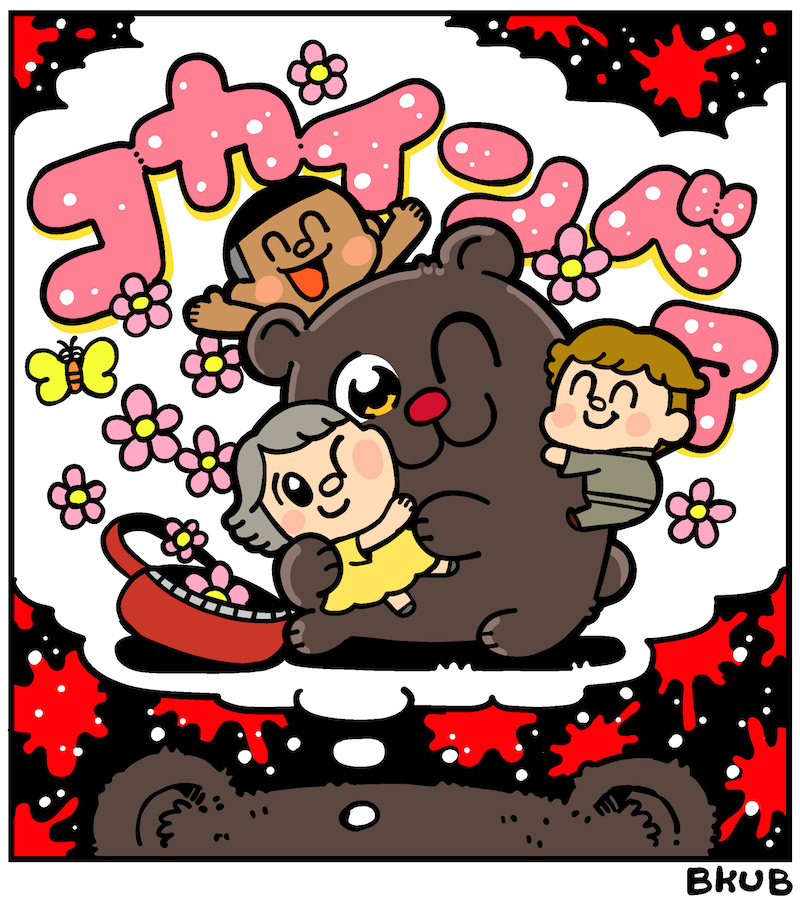 テレビアニメ化もされた大人気漫画「ポプテピピック」の著者としてお馴染みの漫画家・大川ぶくぶのイラストが到着。予告映像などで大暴れしている姿からは想像できない、ハイになったコカイン・ベアのピースフルでキュートな脳内を描いたイラストになっている。