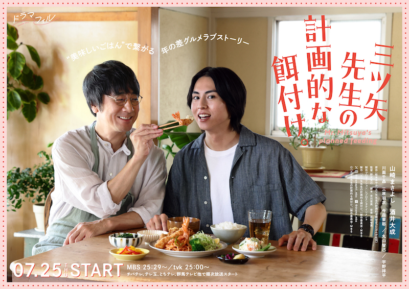 本作は、大人の色気を纏った50代のイケオジ有名料理研究家・三ツ矢歩(山崎まさよし)と、元球児のピュアでまっすぐな雑誌編集者・石田友也(酒井大成)が、<美味しいごはん>と<丁寧な生活>によって心を通わせていくヒューマングルメラブストーリー。
