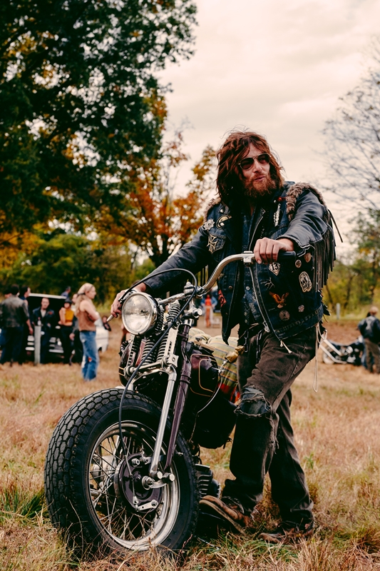 このたび、本作で放浪のバイカー「ソニー」を演じるノーマン・リーダスの初登場シーン映像、そして嬉々としてバイクとともにカットに映り込む様子を写した貴重写真が解禁。プライベートでも大のバイク好きとしても知られるノーマン・リーダスだけにハマり役と言えるソニーだが、普段のノーマンのイケメンぶりを知っているファンからすると、その風貌はかなり強烈だ。