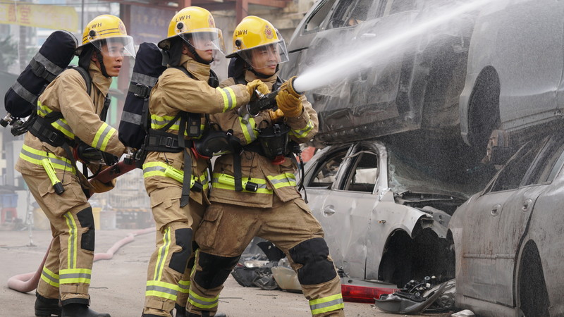 併せて、極限のミッションに挑む人々、そして崩壊寸前の香港を捉えた場面写真も一挙解禁。負傷した仲間を支え合う新人消防士たち、無線で必死に呼びかけるチームの美しき隊長メイエン(ルイーズ・ウォン)、そしてファン(アンディ・ラウ)と政府高官セシリア(カレン・モク)が対峙する緊迫感あふれる場面も。