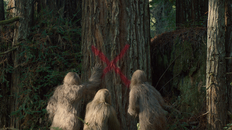 メインビジュアルでは、キャンプをしていたと思われる人々の“忘れもの”を片手に佇む2頭のサスカッチが捉えられている。ラジオカセットを手に持っているサスカッチは、なんと『マッドマックス 怒りのデス・ロード』などでも知られるライリー・キーオ。その見事な変貌っぷりからも目が離せない。