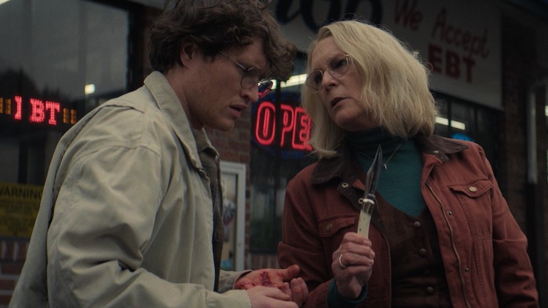 今回解禁となった場面写真は、包丁を手にハドンフィールドに再び戻ってきたマイケルによる新たな惨劇の一部が切り取られており、鏡の中の自分を見つめ、マイケルとの最終決戦を決意するローリーの姿も。また、ローリーと物語の鍵を握る青年コーリーが初めて出会うシーンや、ローリーの孫娘アリソンとコーリーの恋愛を匂わせる一枚も盛り込まれており、今作で初登場となるキャラクターがどのような活躍を見せるのかも気になるところ。果たして、40年に渡る対決の末に生き残るのは、ローリーか、マイケルか。究極のショッキング・ホラー「ハロウィン」がついに完結。