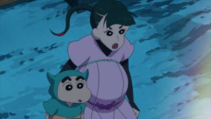 今回は、「しんのすけがひろしとみさえの子どもではなかった?」という衝撃的なストーリーが冒頭から展開。「しんのすけの本当の母」を名乗るくノ一で、珍蔵という子どもを連れた屁祖隠ちよめが来訪したことで、野原一家は騒然。さらに“抜け忍”であるちよめを追って刺客たちも登場し、しんのすけはちよめともども忍者の里へとさらわれてしまう……。