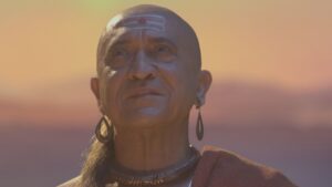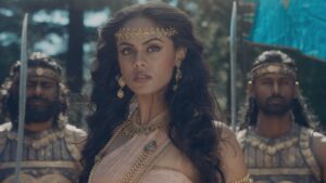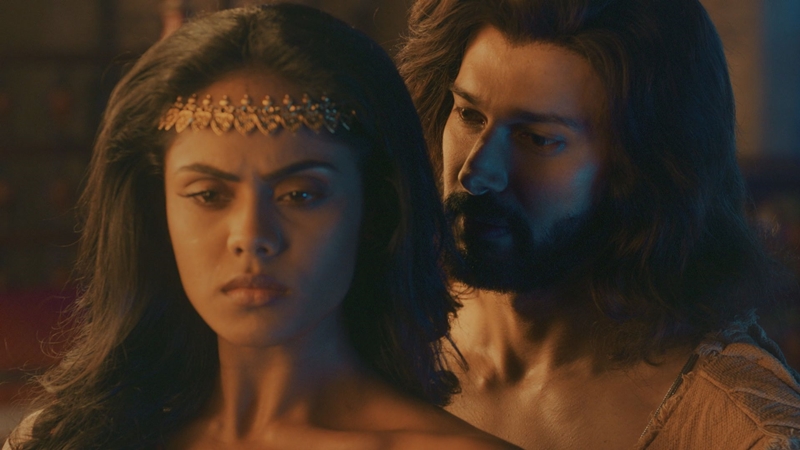 本作は、当時北インドに王国を形成していたドラヴィダ人と、西から攻め入ってきたアーリア人とが出会ったら――という発想のもと、物語が展開していく。筆者はまだ最初の2話を見ただけだが、アーリア人側の物語とドラヴィダ人側の物語が交互に展開し、それぞれに複雑な事情が次々と語られていく。アーリア人の中心人物は勇者ヴァルンデヴ(ラジニーシュ・ドゥッガル)で、他の戦士と共にカヤスト将軍に従い、司祭アグニミトラの導きを受けながら、雪山を越え、東へと歩を進める。隊の中にはヴァルンデヴの父や親友もいれば、彼をうとましく思う者もおり、前途は多難だ。