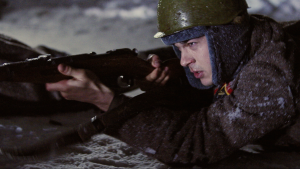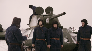 最後はやっぱり戦車について。主人公が乗り込む戦車には、本物のT-34-76が使われています。この「76」は76㎜砲搭載、という意味です。訓練シーンでは、その“六角形砲塔”と呼ばれる型が登場します。これは時期的に合わない(史実では1942年夏以降から配備)のですが、気にせず本物のT-34-76を楽しみましょう。