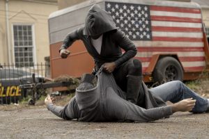 そんなドラマ版の主人公は、レジーナ・キング演じるフード姿の刑事“シスター・ナイト”ことアンジェラ・エイバー。彼女のほか、ルッキングラスやレッドスケアなど何人かの刑事が覆面姿で勤務している。ヒーローと呼ぶには雑なコスチュームだが、素性を隠すついでにヒーロー名を名乗っているようなスタンスなのだろう。