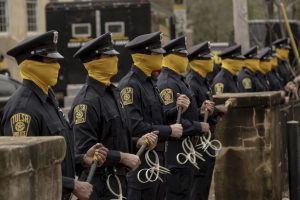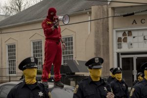 また、制服警官たちも黄色い覆面で顔を隠しているが、これはKKK的な白人至上主義団体<第7機兵隊>による警察官虐殺事件によって激減した人員を確保するための苦肉の策。