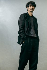 衣装:黒ジャケット ¥66,000(税別) 黒パンツ ¥37,000(税別) suzuki takayuki / ニット、シューズ:スタイリスト私物