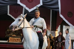 続く第2話の「趙」編では、冒頭に武霊王(ぶれいおう)が登場。当時の中華人が着用していた衣服では騎馬民族に勝てないため、みずから「胡服」(こふく)を着て馬を乗りこなし、軍制を一変。戦争に革命をもたらす(胡服騎射)。また「完璧」の故事で名高い和氏の壁(へき)を藺相如(りんそうじょ)が秦王に献上を持ちかける場面もある。