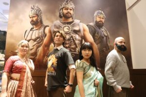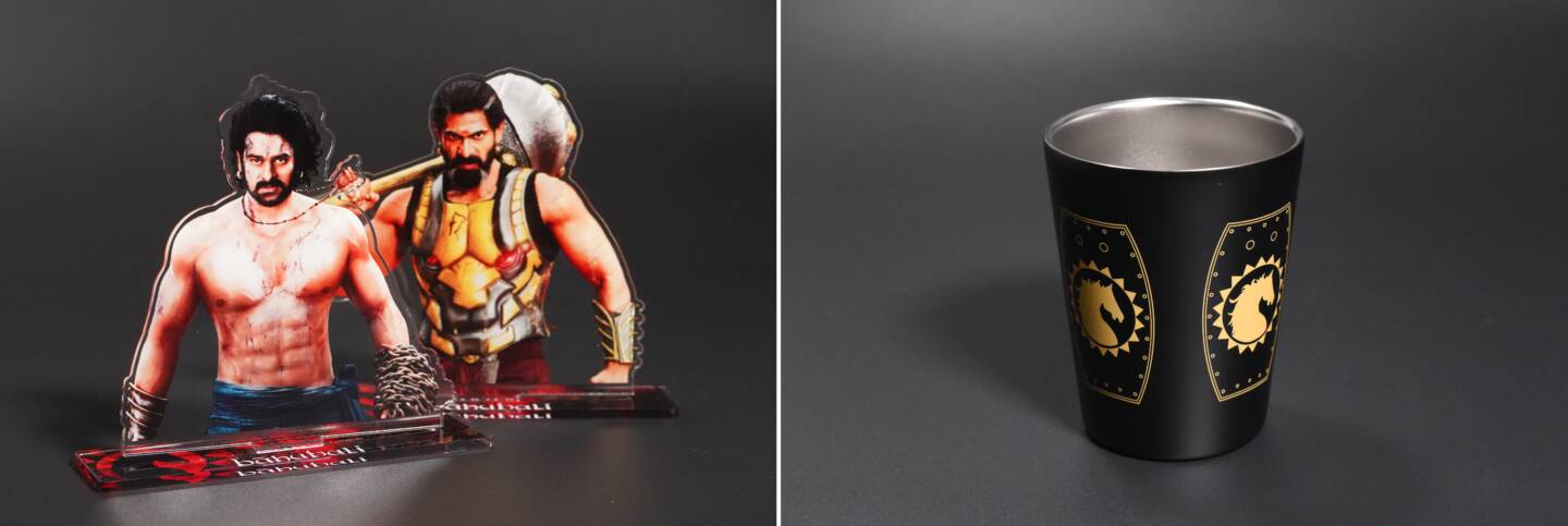 なお今回のVIPルームは「メイキング・オブ・バーフバリ」な仕様。当時の製作風景や、小道具用のデザイン画、グッズに使用されたイラストなどが所狭しと配置されていて、撮影クルー気分が味わえる。そして最大の目玉は、CS映画専門チャンネル ムービープラスが提供した「ラーナー・ダッグバーティの来日密着映像」の再編集版の上映だ。