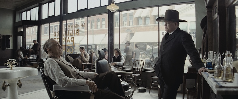 このあたり、現代の設定ならもう少し“葛藤”があるはず。モーリーとアーネストの心が近づいていくドラマも丹念に描かれるだろう。しかし、スコセッシはその部分を短くすっとばし、モーリーの家族が次々と死んでいくプロセスに、その裏で暗躍していそうな人物たちのエピソードを絡めていく。展開にブレがない印象。登場人物たちのモラルや正義感、使命感には、現代の感覚からはかなり違和を生じるも、1920年代、オクラホマの人たちは「こうだった」という揺るぎなさが貫かれているようで、そんなクールな視線が背筋を凍らせるのも、おそらくスコセッシの意図どおりではないか。