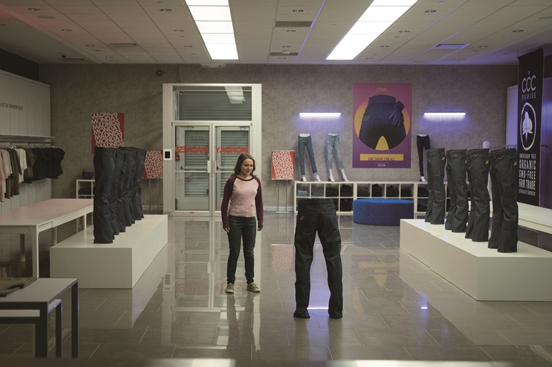 そのまま何食わぬ顔で進行するセールス準備。だが、店舗スタッフを殺害した犯人の正体は、生き物のようにバックヤードを徘徊する新作ジーンズそのものだった。誰にも気取られることなく、いよいよ売り場に現れた殺人ジーンズは、<ある目的>を遂行すべく、壮絶なアパレル大虐殺を開始する……。