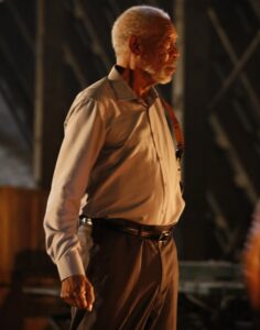 本作でモーガンが演じるのは、大学でアフリカ民俗学を教えるマックルズ教授。「今の時代スマホで何でも調べられる」とホザく生徒の挑発にも乗らず、柔らかく説き伏せる紳士だ。