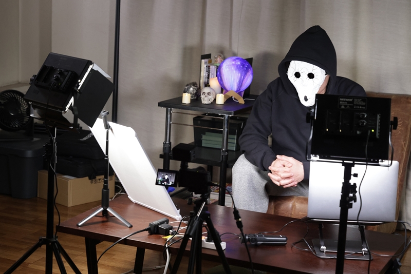 間宮祥太朗さん演じる主人公が、動画を配信するシーンもあります。雨穴さん風の全身黒ずくめで、オリジナルとはひと味違うデザインの白いお面を装着。また柳岡さんを演じるDJ松永さんは、不遜かつ心がないキャラを見事に演じていて実に好感が持てます。また、雨宮は集合住宅の一室をスタジオ兼住居にしているんですが、これが昭和ムード満載の建物で、作品の不穏な空気を高めるのに一役買っています。