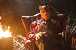 冒頭から豪快に爆発するトレーラーハウス。炎を背景にリアルな顔面になったプーによって行われる残虐な殺人シーン……。おいおい、随分とリッチで格好いいホラー映画じゃないか!