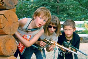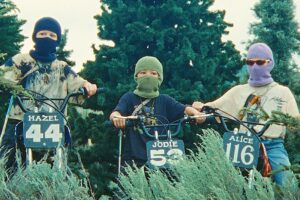 本作は(おばあちゃんの手編みっぽい)毛糸の目出し帽をかぶった、ちびっ子ギャング風の3人がモトクロスバイクで登場し、ビデオゲームを盗み出すところから始まる。その佇まいは、まるで『BMXアドベンチャー』(1983年)。16mmカメラで撮られたザラザラとした柔らかな本作の映像はレトロだが、映像の端々から現代のお話だと推察できる。