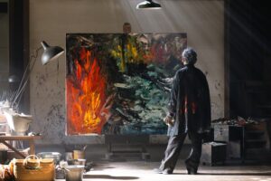そんな竜次は晩年苦しみながら、ずっと描けなかった〈迎え火〉という絵を完成させる。それができた背景には安奈の存在があります。安奈と30何年ぶりに会ったことで、竜次は昔の感覚を取り戻し、海に入って浜辺に焚いた迎え火を見たら、赤が違うことに気づく。それでうわーっと描き、悩み抜いて見つけたのが、自分の吐いた血の色です。