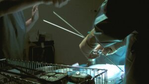 H・P・ラヴクラフト作品すら彷彿させる漁船のカオスを映し出した『リヴァイアサン』を手掛けたあのコンビだけに、今回も本編には一切のナレーションやテロップなし。GoProを最先端医療カメラに持ち替え、頭部にはじまり眼球、消化器官から子宮・胎盤、そして胸椎までをパックリゴリゴリに映し出す。言葉を選ばずに言えば、めちゃくちゃグロテスクな映像の連続である。