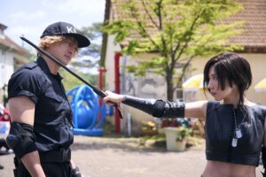 ナイフアクションが難しいのは、振った時に人の体に隠れたりして、画の中で見えなくなってしまうことです。ナイフのアクションを見せるためにカメラがどんどん中に入っていくんです、そうすると長回しのショットが撮りづらくなったりといった難しさがあります。だから、刀に比べてフィジカルの動きをもっと見せたり、ナイフの大きさや見た目にもこだわったり、そういった部分は突き詰めましたね。