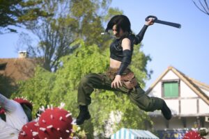 大内:ナイフアクションと刀(ソード)アクションは似ているように感じるんですが、全然ちがうものなんです。ちょっとマニアックな話になりますが、ナイフはスナップをきかせて斬るので、振り方も刀と全然ちがいます。一番のちがいは、距離です。刀や剣というのは、ひと振りひと振りが大きいので、見栄えがしやすいんですね。