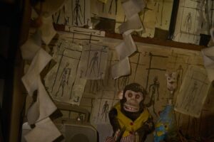 画面いっぱいに詰め込まれた人形たちは、それだけでも不気味さ十分だが、実は美術スタッフが一体一体“汚し加工”を施したというこだわりっぷり。映画本編では、ぜひそんな人形たちの表情にも注目してみてほしい。
