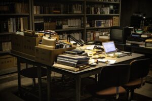 物語の舞台の一つとなるのが、編集長の勤務先でもある出版社のオフィス。実際の市役所を借りて撮影されたこのシーンは、美術スタッフの手によって徹底的に作り込まれ、リアルな出版社の空気感が再現されている。とくに、地下資料倉庫や編集部フロアなどには、目を凝らせば凝らすほど“本物感”がにじみ出るディテールが満載。