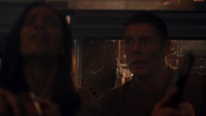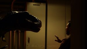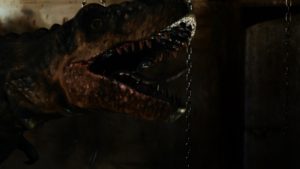 ただし、モンスター・パニック系の映画として特別「コレ!」という見所が少ないのは、本作のやや困ったところだ。一応、本作はアサイラム作品にしては恐竜の出番が多く、鏡を使った構図など、演出面でもちらほら工夫してあるのだが、まともな作品としてもヘンテコ映画としても、目を引く派手さには欠けてしまっているので、いわゆるアサイラムのサメ映画に慣れている視聴者には、物足りなさを感じるかもしれない。