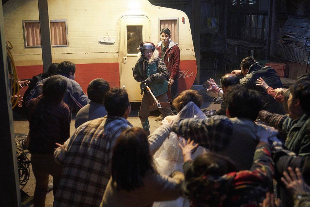 後半には、長男ジュンゴルの妻ナムジュ(オム・ジウォン)の出産騒動も、阿鼻叫喚のゾンビ大発生もあり、身の回りのもので武装して戦う展開もしっかりご用意。これまでのゾンビ映画へのオマージュがふんだんに散りばめられ「ゾンビは音と光に反応する」というお約束からの『ランド・オブ・ザ・デッド』(2005年)オマージュなんて、ちょっと感動的ですらある。