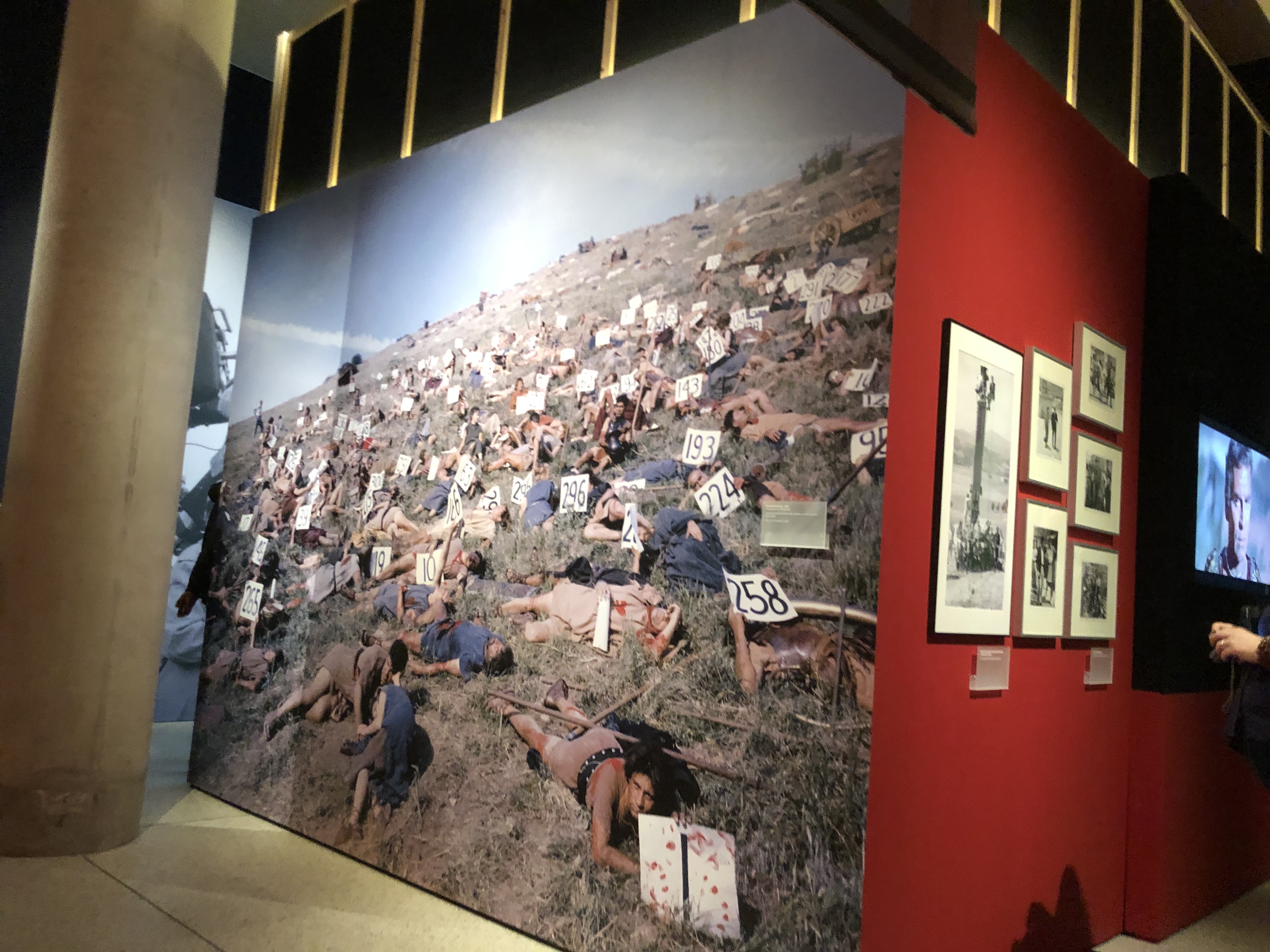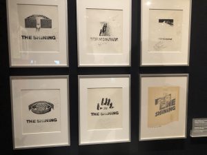 面白いのは、各作品の展示が年代順ではないこと。1950年代の『突撃』『スパルタカス』から、一気に『フルメタル・ジャケット』(1987年)に飛ぶ。この3作は戦場を描いているためだろう。続いて『ロリータ』、『時計じかけのオレンジ』(1971年)、『アイズ・ワイド・シャット』、そして『シャイニング』(1980年)、『バリー・リンドン』(1975年)、『博士の異常な愛情」(1964年)と続く。