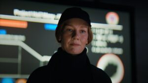 宇宙にグレースを送り込むエヴァを演じたザンドラ(・ヒュラー)と僕は、航空母艦で撮影するシーンがあって、僕らは廊下を隔てて向かい合っていました。あるとき楽屋にいると、外から天使のような歌声が聞こえてきたんです。まるで天から蜂蜜が降り注ぐような声でした(笑)。いったいどこから!? と思ってドアを開けると、ザンドラの部屋からでした。