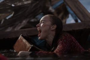 どう見ても臨月の妊婦をパニック要員として登場させるあたりはウィルコラ監督らしく、それを序盤最大の見せ場=最初のサメ被害につなげるという意地の悪さにハラハラさせられる。序盤でチラ見せした主人公の悲しい背景が逆に緊迫感にブレーキをかけてしまっているのがやや残念だが、ここはZ世代な主人公の“覚醒”を見せたかったのかもしれない。