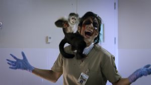 『ZOOMBIE ズーンビ』は、ある動物園の胡散くさいPR動画から始まる。今から約50年前に、絶滅寸前の動物を保護して増やすために設立されたという<エデン野生動物園>、そこが物語の舞台だ。動物園の全景を、地上から空からダイナミックに撮影した、ジュラパ感あふれるオープニングはなかなかの迫力(映像素材を買っただけかもしれない)。そして開始から5分も経たないうちに、小さな猿が狂暴化して園のスタッフに襲いかかる!