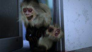 あまりにテンポが良いものだから、残り1時間20分をどう乗り切るつもりなのか心配になってくるが、ユーザーを飽きさせまいとするサービス精神は、さすがアサイラム。そして、この人がヒロインかな? と思っていた女性獣医が早々に猿に惨殺されたところで、ドーンとタイトルが。あ、これプロローグだったのか……早とちり失礼しました。