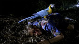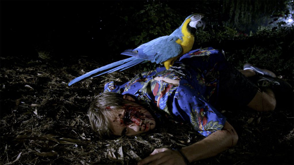 『ゾンビ』シリーズ(1978年)や『ジュラシック・パーク』シリーズ(1993年~)のお約束展開や、『エイリアン』シリーズ(1979年)などSFホラーの設定も拝借しつつ、それらの足元にも及ばない手作り感あふれるグダグダなアクションシーンは、もはや牧歌的ですらある。