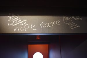 店内の壁に描かれたノップトルーパーズのサイン