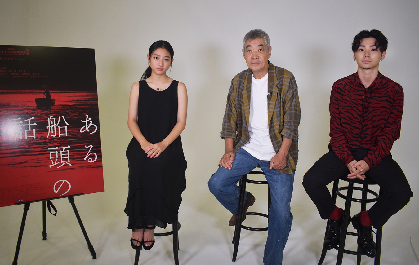 オダギリジョーが、かねてから親交の厚い巨匠クリストファー・ドイルを撮影監督に迎え、時代の変化に翻弄される一人の船頭の姿を美しい映像で紡いだ長編初監督作品『ある船頭の話』が2019年9月13日(金)より公開。本作が実に11年ぶりの主演作となる名優・柄本明、ヒロイン役に抜擢された川島鈴遥、主人公を慕う村人を演じた若手実力派・村上虹郎の3人が、撮影現場の裏話やオダギリジョー監督について語ってくれた。