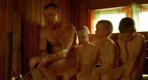 本作に登場するのは、主にアラサー~アラカン(それ以上?)の幅広い世代の男性たち。継父から暴力を受けていた幼少時代、愛する妻と幼い子どもとの幸せな生活、離れ離れになってしまった娘への想い、はては元アル中の前科者や妻子を亡くした男性など、置かれた状況は様々。そんなワケアリの人々が、ときに笑い、ときに涙しながら、もれなく汗びっしょりになって(生まれたままの姿で)語り合う姿は、まるでフィンランドが生んだ名匠アキ・カウリスマキが描く悲喜劇のような趣すら感じさせる。