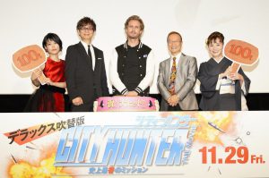 『シティーハンター THE MOVIE 史上最香のミッション』完成披露イベント (左から)沢城みゆき、山寺宏一、フィリップ・ラショー、神谷明、伊倉一恵
