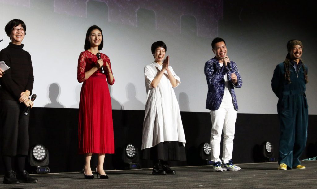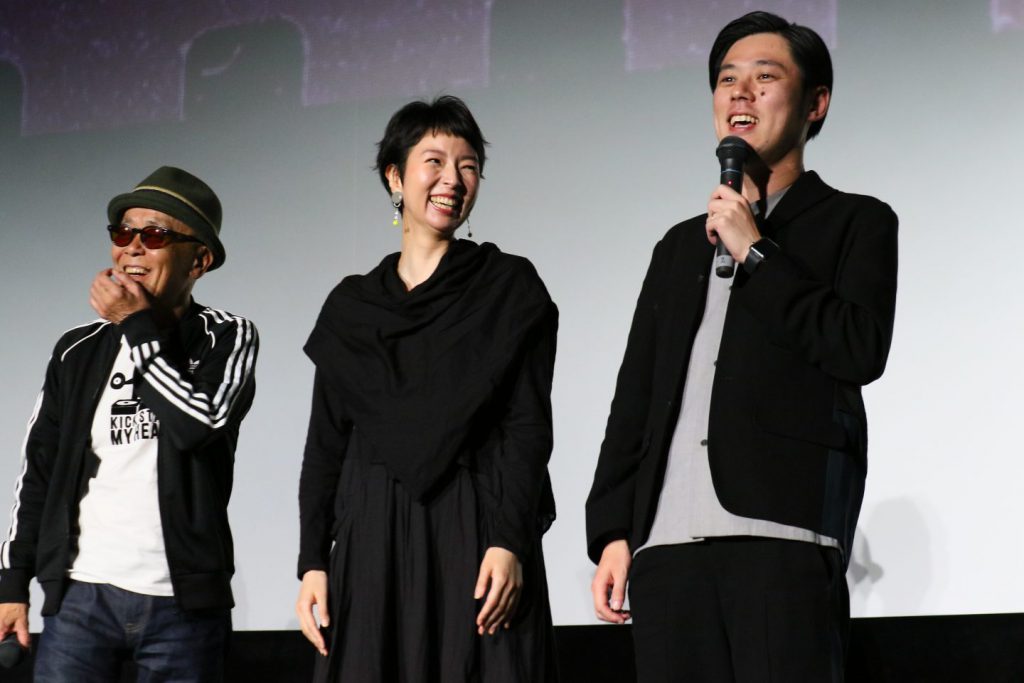 同作は作家・岡本かの子の小説からインスパイアされた3組の男女が織りなす恋愛模様を描いた作品。山形で撮影が行われた第2幕「追憶の風景」には、地元出身のミュージシャン・峯田和伸と橋本マナミ、お笑いコンビ「あがすけ」の吉村和彬が出演しており、開場前には長蛇の列ができるほどの盛況ぶりだった。峯田が体調不良で参加できなかったのが惜しまれるが、舞台挨拶では共演者から「峯田さんの山形弁はずうずう弁過ぎる」などの発言も飛び出し、ここでしか聞けない地元ネタで終始笑いに包まれた。