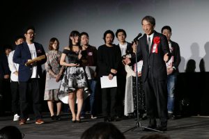 私は第10回YMF2014のコンペティションで、『オンディーヌの呪い』という作品で準グランプリをいただきました。その後、かなり変わった企画に取り組み、一緒に並走してくれる人が現れては消えてなかなか形にならず、もうこの作品で映画作りをやめてもいいかなと思いながら自分で資金を集めて『赤い雪 Red Snow』を製作しました。その作品を持ってYMFにまたこうして戻ってこられて嬉しいです。今回受賞した方々が、また次の作品を撮れるようにここにいらっしゃる方々が応援してくださることを願ってます。