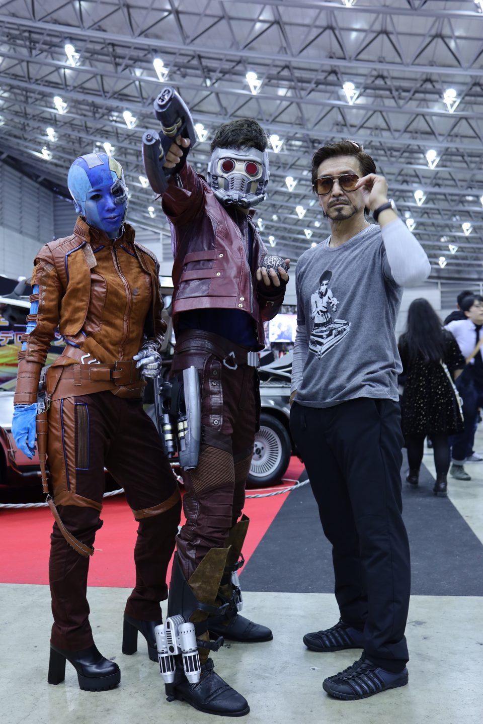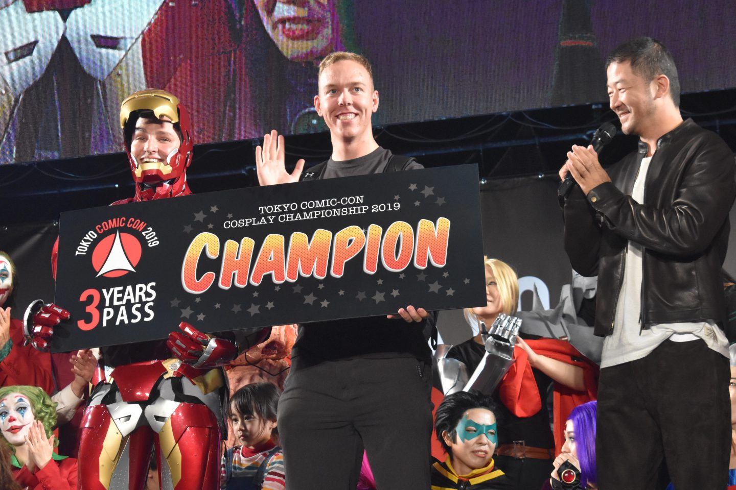 最終日に開催されたコスプレコンテスト「TOKYO COMIC CON COSPLAY CHAMPIONSHIP 2019」で大賞の「東京コミコン賞」に選ばれたのは、光るボディにカシャンと開閉するマスクなど、アイアンマンのスーツを完コピしたチーム「THE 沖縄 アイアンマン」! ちなみに、お隣の全身黒づくめの方は“バッテリー”だ。
