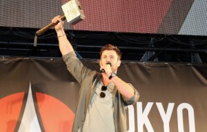 来日したスターたちは撮影会・サイン会とは別に、メイン・ステージでファンの方々に挨拶するというのがならわしになっています。今回、そのステージMCのいくつかを担当させていただきました。クリス・ヘムズワースさんは僕1人、マーク・ラファロさんのステージはアメコミリーグの皆さんと、イアン・サマーホルダーさん、ジュード・ロウさん、オーランド・ブルームさん、ザッカリー・リーヴァイさん、ルパート・グリントさんの登壇ステージは、「東京コミコン2019」の広報部長兼メインMCである宇垣美里さんと務めさせていただきました。