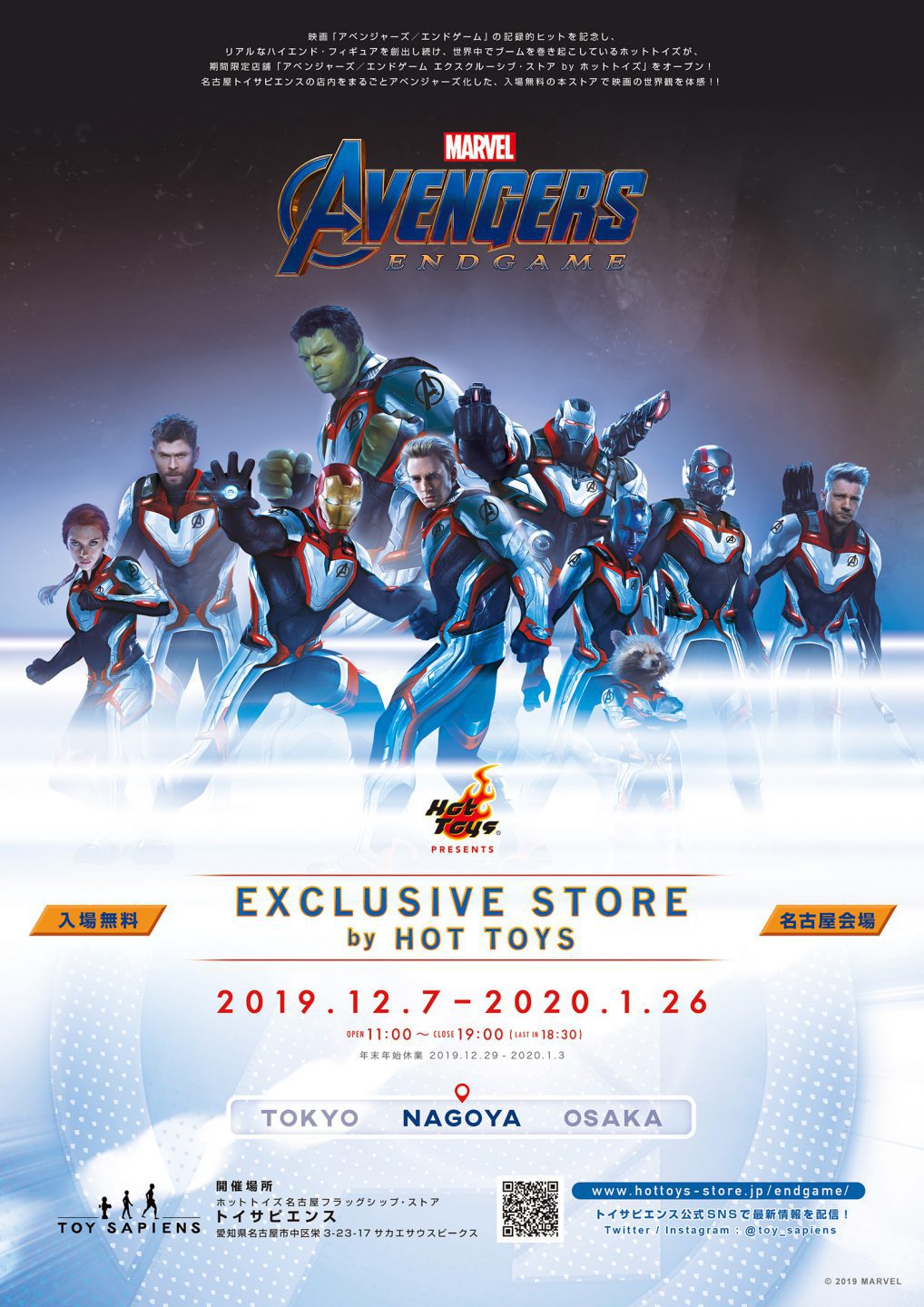 「東京コミコン2019」でもファンがブースに長蛇の列を作ったホットトイズが、「トイサピエンス名古屋」をオープン!2019年12月7日(土)から2020年1月26日(日)の期間限定で、入場無料のイベント<アベンジャーズ/エンドゲーム』エクスクルーシブ・ストア by ホットトイズ>を開催する。実際に使用したコスチューム、超リアル等身大フィギュア、1/6スケール可動式フィギュアの展示や、ここでしか手に入らない限定アイテムが勢揃い!