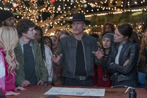 本作では他にも、主人公パーティーのコロンバス(アイゼンバーグ)とタラハシー(ハレルソン)を完コピしたようなキャラ、アルバカーキ(ルーク・ウィルソン)とフラッグスタッフ(トーマス・ミドルディッチ)も中盤の笑いに大いに貢献している。特にミドルディッチは、スタートアップの起業を目指すオタクたちを描いた人気ドラマ『シリコンバレー』(2014年~)に主演しているだけあって、早口オタク演技のアイゼンバーグ(のウザさ)とばっちりシンクロしていて爆笑必至だ。
